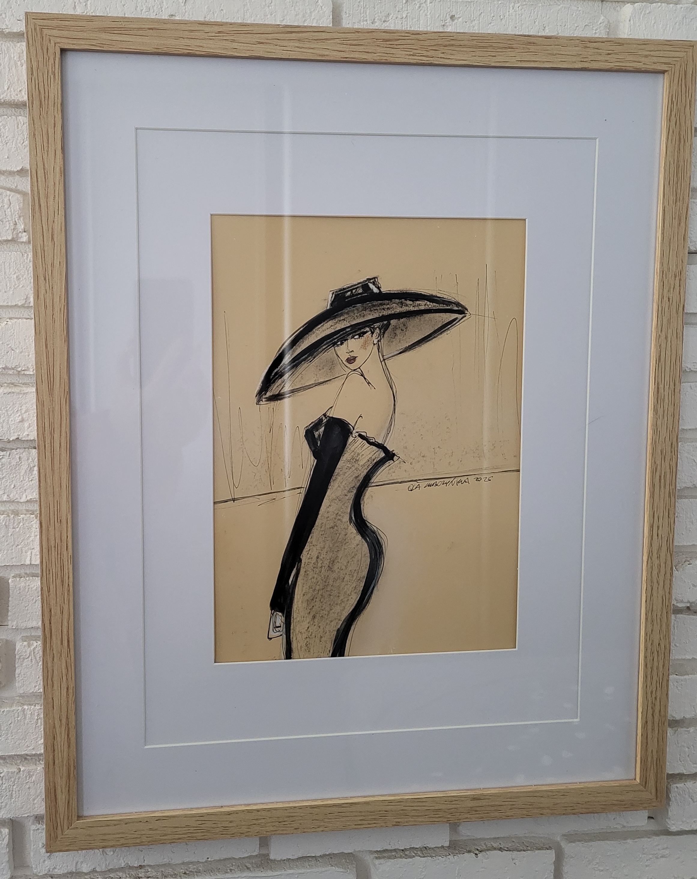 Przymiarka, A3, jest włożony w ramkę czarną z białym passe partout.